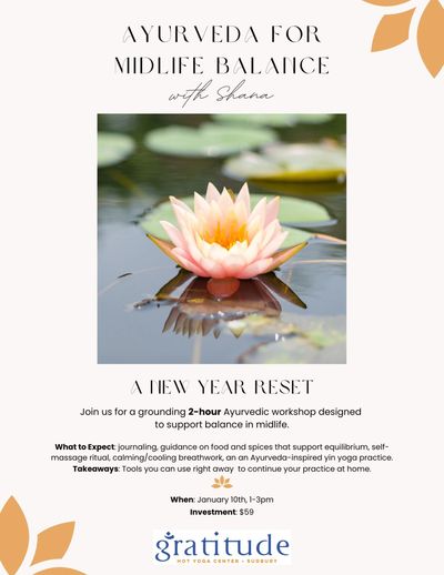 This 2-hour workshop offers practical Ayurvedic tools and rituals to support women through some of the imbalances commonly experienced in perimenopause and menopause. In this workshop, you’ll: